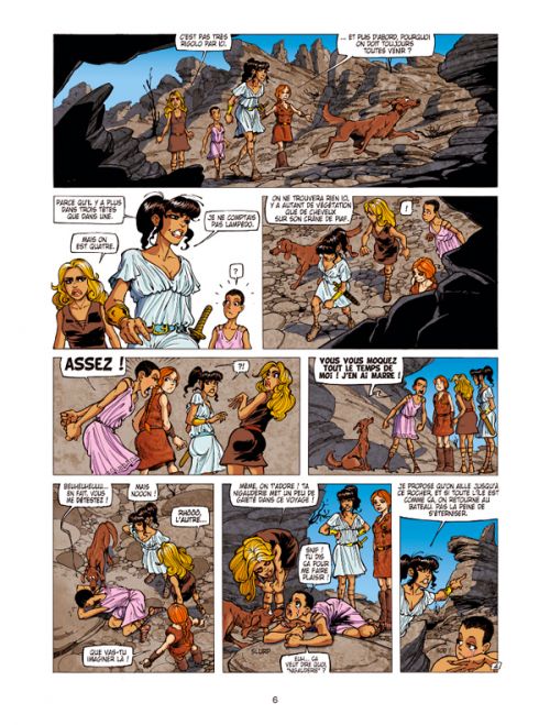En marge des albums pédagogiques de la collection Sagesse des mythes de Glénat, la richesse de la mythologie grecque, largement décrite à travers les œuvres d’Homère, se prête admirablement à la parodie humoristique – et néanmoins didactique aussi ! Chez Soleil, Bernard Swysen a ainsi pris le parti d’envoyer la femme d’Ulysse accomplir sa fameuse odyssée, et s’affranchir à son tour des nombreux pièges qui lui ont été tendus. Evidemment, quand on connait la verve de Swysen et son penchant pour les calembours, on se doute que ça va être autant piqué des vers que la chevelure de la Méduse. Et quand on s’est aussi rappelé que le dessinateur Christian Paty a dessiné 27 recueils de vannes potaches des Blondes, à travers le pseudo de Dzack, on peut s’attendre au pire concernant le sort des quatre copines embarquées sur la mer Egée en quête de gros problèmes fantasmagoriques. Dans ce Deuxième chant, Pénélope se confronte donc au cerbère, à Charon le passeur des enfers (en couverture), mais aussi au pire des monstres terrestres : sa belle-deuche. Pénélope et cie tomberont ensuite de Charybde (un siphon maritime dentu) en Scylla (un reptile géant à 6 têtes), puis partiront en urgence en quête de la fontaine de jouvence. Elles seront néanmoins aidées par la déesse Athéna en personne (plutôt puissante), et feront même un saut temporel jusqu’à notre insupportable époque touristique. Bref, c’est fun, délaçant et plutôt bien balancé. Parions qu’un troisième chant est déjà en route…