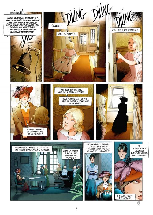 Nouvelle série-concept au sein du catalogue Soleil, Pionnières propose des tomes indépendants mettant en avant des femmes exceptionnelles mais souvent méconnues, qui se sont imposées dans un monde d’hommes grâce à leur talent et leur opiniâtreté. Après l’océanographe française Anita Conti, ce tome 2 s’intéresse ainsi à la journaliste américaine Nellie Bly. Entre ses premiers reportages dénonçant les conditions des ouvriers en usines, celle des femmes dans un monde d’hommes ou encore des conditions de vie au Mexique et son tour du monde en 72 jours (mieux que Phileas Fogg, le héros de Jules Verne), la journaliste a aussi eu une vie extrêmement riche. Or pour cet album, le scénariste Nicolas Jarry centre son récit sur un autre événement majeur de la carrière de Nellie Bly. En effet, le scénario focalise sur la période où la journaliste infiltre le Blackwell’s Island Hospital en tant que patiente, afin de réaliser un reportage en immersion et dénoncer les conditions horribles dans lesquelles on y détient les femmes. Rentrant rapidement dans le sujet, le récit est incroyablement passionnant et se lit d’une traite ! Entre la découverte des différentes patientes rarement réellement folles, la manière dont les infirmières jouent les tortionnaires ou encore l’insalubrité du lieu, l’histoire ne cache rien des horribles conditions d’internement de l’époque. Passionnant de bout en bout, l’histoire est mise en images par Guillaume Tavernier (Chasseur d’héritiers). Son trait réaliste dynamique s’intègre au récit via un découpage classique et réussi. Les expressions des protagonistes, qu’ils soient bienveillants, belliqueux ou fous sont également efficaces. Enfin l’album se conclut par un passionnant cahier de 7 pages s’attardant sur les autres actions majeures de l’héroïne.