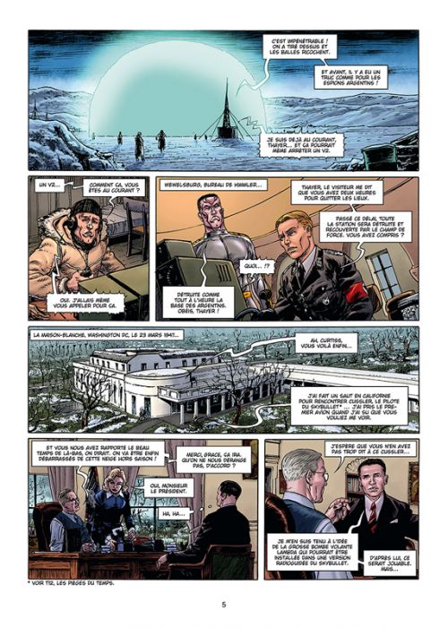 En Antarctique, dans la zone de forage, une grande boule incandescente grandit à vue d'œil. Les soldats nazis sont éberlués, d'autant que leurs tirs ne donnent rien, les balles ricochant sur cette boule. Ils reçoivent alors un message du bureau de Himmler, installé à Wewelsburg. Ils ont ordre de quitter les lieux le plus rapidement possible car ce champ de force va finir par détruire la station comme elle l'a fait en Argentine. Pendant ce temps, à Washington, le Président reçoit dans le plus grand secret Curtiss. Ils sont devant un choix difficile. Curtis est pour l'utilisation de la bombe A sur l'Allemagne nazie, car l'ennemi prépare un coup. Il faut donc l'arrêter au plus vite. Cependant, le Président n'est pas d'accord. Il a vu les ravages de la bombe atomique sur le Japon et il est hors de question de le faire en Europe. Ils se contenteront du plan « Little Girl ». En Suède, Pauwels a rendez-vous avec de Gaulle. Il prend donc un avion, le B-29 NC-18649, transformé en transport de passagers pour l'occasion. Mais le voyage ne va pas être de tout repos, car ils tombent rapidement sur une petite escouade allemande. Le B-29 est en grand danger...