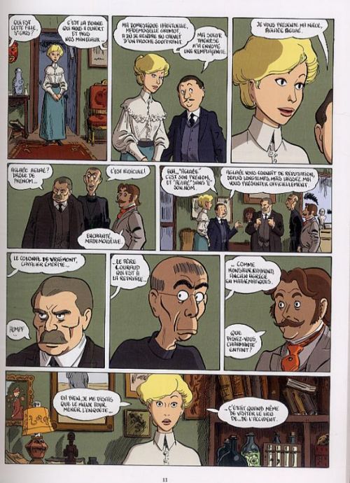 Une enquête policière avec comme personnage central une femme, située en pleine belle époque avec pour ingrédient un peu de fantastique, une pointe d’humour… ça ne vous rappelle rien ? Adèle Blanc-Sec, bien entendu ! Ici, Li-An rend un hommage appuyé à cette figure majeure du 9e Art avec cette mise en bouche. Aglaëe Aglaé est la digne héritière de l’héroïne de Tardi et la cousine germaine d’un Rouletabille. Le dessin de Li-An sublimé par les couleurs éclatantes de Laurence Croix (la coloriste attitrée de Brüno, notamment) est d’une extrême fluidité. Son trait précis est empreint d’élégance. Les expressions des personnages sont bien retranscrites. Là où le bas blesse, un peu, c’est dans le scénario, qui manque singulièrement d’originalité. Déjà-vu, en quelque sorte ! L’intrigue se rapproche du Double assassinat de la rue Morgue d’Edgar Allan Poe. Le style de l’épilogue est directement inspiré d’Adèle Blanc-Sec, avec toute une série de questions posées (comme dans les feuilletons de l’époque), qui trouveront leur réponse dans le tome 2, d’ores et déjà intitulé La vengeance du grand singe blanc. Dommage, car les dialogues sont pertinents, la narration est teintée d’humour (la jeune femme morte, comme tombée du ciel est prénommée… Colombe). Peut-être vaut-il mieux attendre la suite pour se faire une idée plus précise ? L’ange tombé du ciel ne vous emmènera donc pas au nirvana, mais reste quand même agréable à lire et prenant.