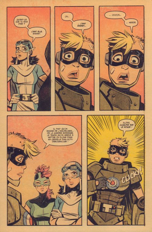 Tank Girl, c'est l'exemple même de la série underground devenue culte en même temps que populaire. Née il y a un peu plus de 30 ans de l'imagination d'Alan Martin et dessinée alors par Jamie Hewlett, issue d'un fanzine, elle incarne à l'époque le mouvement punk et sert la cause féministe. Tank Girl, c'est un sacré bout de nénette qui vient faire la nique (shocking !) à la Dame de Fer qui gouverne alors l'Angleterre. Car si l'action se passe en Australie, ce qui lui donne aussi un petit côté «exotique», c'est bien la Grande Bretagne conservatrice à qui elle botte le... oui, bon, on ne vous fait pas de dessin... Rebecca Buck devient ainsi, au fil des ans, le symbole anarchiste d'une violence tournée au second degré mais qui contient une réelle part de subversion. Mais que voulez-vous, il y a des lois universelles, comme celle de l'embourgeoisement et le chemin de ce petit bout de nerf a aussi obéi à la règle, succès commercial aidant. Si bien qu'aujourd'hui, Tank Girl continue à botter des fesses, mais sur le registre de la farce et non plus de la rage politisée. Cela ne veut pas dire que son créateur l'a dévoyée : on peut facilement comprendre que trois décennies après, Alan Martin ait aussi un autre regard d’artiste et sans doute l'apaisement qui résulte de la reconnaissance, tout simplement de la réussite de sa création. Alors on se réjouira avec ce nouvel opus qui singe les super-héros de façon assez hilarante. Imaginez de grands costumes répondant à de grandes responsabilités, un jeu comme comme les échecs à chatte, du Shakespeare dans le texte, des burgers végétariens et une météorite qui va s'abattre sur Melbourne et vous avez les éléments de ce grand délire, qui n'a pas d'autre prétention que de divertir. Brett Parson, quant à lui, fait un boulot impeccable. Le bouquin étant imprimé sur un papier jauni qui simule celui des vieux comics, il arrive à intégrer une touche retro à ses graphismes et pousse le vice jusqu'à reproduire des couleurs délavées qui débordent de quelques millimètres des cases, comme un clin d’œil aux veilles techniques d'impression. Ne croyez pas qu'il s'agisse d'un gadget, l'effet est terriblement plaisant. Alors si vous voulez du fun et rien que du fun, un peu d'amour aussi, vous apprécierez cette Tank Girl que nous, on aime Forever !
