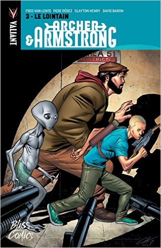 Au sein du catalogue Valiant Comics, chaque série possède un registre assez différent. Mêlant action et humour, le duo Archer & Armstrong attire la sympathie des lecteurs dès les premiers numéros. Après les menaces représentées par les sectes et le culte meurtrier des mathématiques, le scénariste Fred Van Lente confronte le duo de héros aux extra-terrestres de Roswell et à un monde très dangereux, un univers qui n'est pas sans rappeler la fameuse Terre Sauvage des séries Marvel avec ses dinosaures et ses indigènes mais aussi plus original : des soucoupes volantes ! Comme d'habitude, l'humour est omniprésent et certaines séquences sont proprement drôlissimes. Les scènes mettant en image un certain chef militaire ne manquent jamais de saveur. Le mystère entourant certains pans du passé d'Obadiah Archer se lève doucement, même si il reste beaucoup à en apprendre, et ce ne sont pas les différents personnages qu'il croisera qui viendront nous éclairer suffisamment. Les dessinateurs Pere Pérez et Clayton Henry assurent tous les deux une partition graphique de très bonne qualité. Leurs styles respectifs sont très proches et rendent ainsi la lecture plus immersive. Vivement la suite !