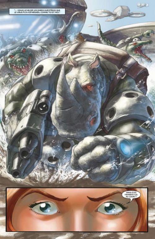 Richard Starkings est connu des lecteurs de comics pour être l'un des lettreurs les plus usités de la profession. Nonobstant, celui-ci a nourri pendant des années l'envie de créer sa propre série et il l'a présenté aux mastodontes Marvel et D.C. Comics sans succès. Heureusement, par l’intermédiaire d'Image comics, il a pu mener son projet à bout et créer en préambule Hip Flask. Cette série était prévue en 5 romans graphiques, illustrés par Jose Ladrönn. Or devant les délais extrêmement longs du dessinateur mexicain (seulement 4 albums sortis depuis 2002), Starkings a créé Elephantmen, une autre saga, pour étoffer son univers. Grâce à Delcourt, les lecteurs découvriront ces multiples récits de façon chronologique dans un premier tome nommé Jouets de guerre. En reprenant astucieusement quelques planches du premier volet d'Hip Flask, on assiste à la création de ces êtres mi-hommes mi-animaux, des créatures dénuées de sentiments qui n'ont qu'un objectif : remporter la guerre qu'ils mènent. Cette mise en bouche introduit progressivement les éléments permettant de mieux comprendre comment ce monde est devenu aussi violent. Au travers du destin d'Yvette, la petite française de l'histoire, on suit la destinée tragique des humains encore en vie, coincés entre des Mappo (nom des créatures) et les troupes chinoises. L'univers développé est sombre et violent et profite de dessins de bonne qualité, dans l'ensemble. Jose Ladrönn n'est présent que sur quelques pages, présentes dans le premier Hip Flask. Moritat et Axel Medellin se chargent de la grande partie de Jouets de guerre. Leur trait ne peut atteindre le niveau d'excellence de Ladrönn. Entre le trait pastel de Medellin et le côté rude de Moritat, le visuel d'Elephantmen ne démérite pas. Voici des débuts engageants donc...