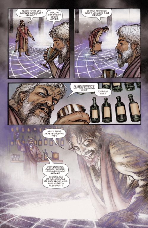 Second Coming débarque en France et la génèse (si on ose dire) de la série est en elle-même intéressante, puisqu'avant que quiconque n'ait pu lire Le retour du Messie aux States, une pétition a réuni plus de 100 000 signatures intimant DC/Vertigo de renoncer à sa publication. Le gros éditeur voyant arriver des embrouilles encore plus grosses que son siège social, il trouve un arrangement plus ou moins amiable avec Mark Russel pour finalement avorter la sortie (pardon pour le terme, mais c'est quand même paradoxal quand on cède aux cathos intégristes). Qu'à cela ne tienne, Ahoy Comics prend les risques que la Dégonflée Concurrence a refusés et voici donc l'attendue VF chez Delcourt. On se permettra aussi de souligner le drôle de parcours de Mark Russel, déjà auteur de pamphlets ayant pour thème la religion, avant qu'il ne travaille pour l'industrie des comics à compter de 2015. Et depuis, il est systématiquement nominé aux Eisner ou primé par ailleurs, entre sa première série, Prez, qui décrit l'élection à la Maison Blanche d'un ado et les Flintstones, dont il finit par réinterpréter le personnage principal pour en faire un gothique gay vivant à N-Y en 1950 ! Alors qu'est-ce qu'il vaut, ce Verset 1 ? Une petite bénédiction, serait-on tenté de vous répondre, tant on a ri, alors que le propos de l'auteur - dont il s'explique en postface - est loin d'être idiot ou de se limiter à une pure provoc' dont Garth Ennis reste le maître. Ok, c'est irrévérencieux, mais après tout, on devrait être fiers de pouvoir rire d'un Dieu sans risquer un contrat ad vitam æternam sur sa tronche ou voir une rédaction assassinée... Alors on a pris le parti de rien vous dire d'autre que ce nouveau blasphème : allez chez votre libraire préféré.e et cédez à la tentation. Amen !