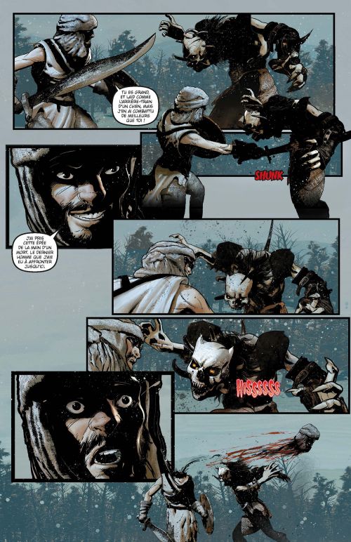 On ne présente plus la créature maudite née de l’imagination de Todd McFarlane et les lecteurs des productions Top Cow se souviennent également de Witchblade, ce bras métallique orné de gemmes, qui confère à celle qui le porte un pouvoir incommensurable. Cet artefact, que seule une femme peut arborer, est souvent associé à Marc Silvestri seul mais c'est une erreur, celui-ci étant co-créateur avec feu Michael Turner, David Wolh et... Brian Haberlin, dessinateur qui a toujours favorisé la technique digitale et qui peut se targuer d'avoir aussi amené sa pierre à la malédiction du Hellspawn. Ce n'est donc pas un hasard si toute la team, y compris Geirrod Van Dyke, extraordinaire dessinateur à qui on a ici confié la couleur, est plus que familiarisée avec les deux personnages du titre. Si on se réfère encore au passé, ce n'est pas le premier crossover «médiéval», Garth Ennis et Brandon Peterson ayant signé une histoire en trois chapitres (pas fameux par ailleurs), édités chez nous par Semic en 1996. Quoi qu'il en soit, c'est une version musclée et épique qui nous est présentée cette fois-ci. Rien de bien sorcier dans le scénario, malgré beaucoup de sorcellerie et de magie noire, mais cette recette qui joue sur les stéréotypes du genre médiéval fantastique, à défaut d'être originale, a le mérite d'être divertissante. C'est donc sans déplaisir qu'on se laisse embarquer dans ce conte sanglant, même si son déroulé s'avère assez linéaire, une fois le décor planté et les personnages introduits. Pas de quoi crier au chef d’œuvre, ni au scandale car il faut l'avouer, on est au delà du fan-service et ce one shot séduira certainement ceux qui ne sont pas familiarisés avec les série-mères des personnages. Côté visuel, Brian Haberlin a encore affiné sa technique, au point où on a le sentiment que ses dessins colleraient parfaitement à un jeu vidéo. Le visuel est donc assez clivant, selon que vous soyez «de la vieille école» ou bien open au digi-style. Enfin, une application pour mobiles (élaborée par le studio de Brian Haberlin) pourra venir compléter l'expérience de lecture et là, franchement, on se contentera de vous dire qu'elle existe... et que pour le coup, les aventures médiévales de ce Hellspawn et de cette nouvelle Witchblade sur papier se suffisent à elle-même ! En selle, damoiseaux, préparez vos braves destriers et allons combattre l’innommable !