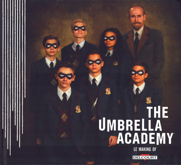 The umbrella Academy a connu énormément de succès lors de sa sortie en 2019 sur Netflix. Cette série aux super-héros très particuliers est adaptée du comics créés par Gérard Way et Gabriel Ba. De ce fait, la publication de ces comics a retrouvé une seconde jeunesse et ils ont un bel avenir devant eux. Comme pour mieux illustrer la « umbrella mania », Delcourt sort un livre making of de la première saison de la série. Ce format à l’italienne regorge de photos, dessins et documents avec souvent quelques croquis ou extraits du travail de Gabriel Ba. On commence en toute logique par redécouvrir les personnages de la série puis pas moins de 90 pages explorent les lieux, pièces et décors... Le projet laisse un peu perplexe tant les textes sont sans intérêt. On aurait aimé une étude comparative avec le comics ou des analyses cinématographiques sur les choix de la série par exemple mais rien de tout cela. Mike Richardson se contente simplement d’expliquer en quelques mots ce que l’on a déjà vu sur Netflix. L’album est visuellement beau c’est certain mais là aussi, les choix iconographiques déçoivent petit à petit. Montrer des micro détails comme les tableaux que regarde Grace ou les posters de la chambre d’Alyson lasse très rapidement. Quelques passages retiendront néanmoins l’attention, notamment les superbes story boards en fin d’album de Nimit Malavia. Pour le reste, on se tournera vers la série ou les comics pour véritablement découvrir cette Academy pas comme les autres.