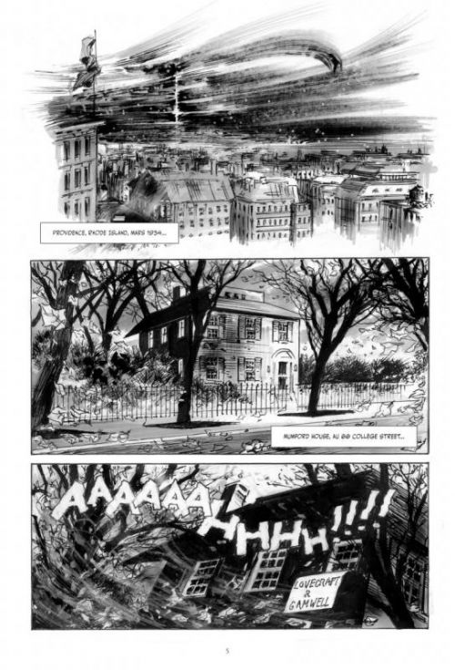 Progressivement, la collection Flesh Bones des éditions Glénat s'étoffe avec des titres la plupart du temps de qualité. Avec Voyage au pays de la peur, le scénariste Rodolphe choisit de remanier la mythologie entourant le fameux Howard Phillip Lovecraft en racontant comment le romancier se serait vu conter une histoire qui le hantera des nuits durant. Dès les premières pages, le lecteur va plonger dans un récit à l'atmosphère particulièrement soignée. L'ambiance étrange omniprésente dans les romans de Lovecraft est ici retranscrite avec justesse par le biais d'un découpage efficace et de dialogues immersifs. On a parfois l'impression que la folie nous guette au détour d'une page... Si la narration est vraiment bonne, on regrettera juste un léger creux au deux tiers de l'album. Aux dessins, nous retrouvons Jean-Jacques Dzialowski dont le trait, entre réaliste et minimaliste, allié aux nuances de gris, permet de plonger plus profond dans les eaux troubles de cette sombre expédition. On notera cependant quelques pages en deçà en terme de finition vers le milieu de l'ouvrage. Même si nous sommes loin de l'excellent Providence d'Alan Moore, Voyage au pays de la peur apporte son lot de sueurs froides et se montre aussi inspiré que plaisant à lire. De quoi combler l'amateur du genre...