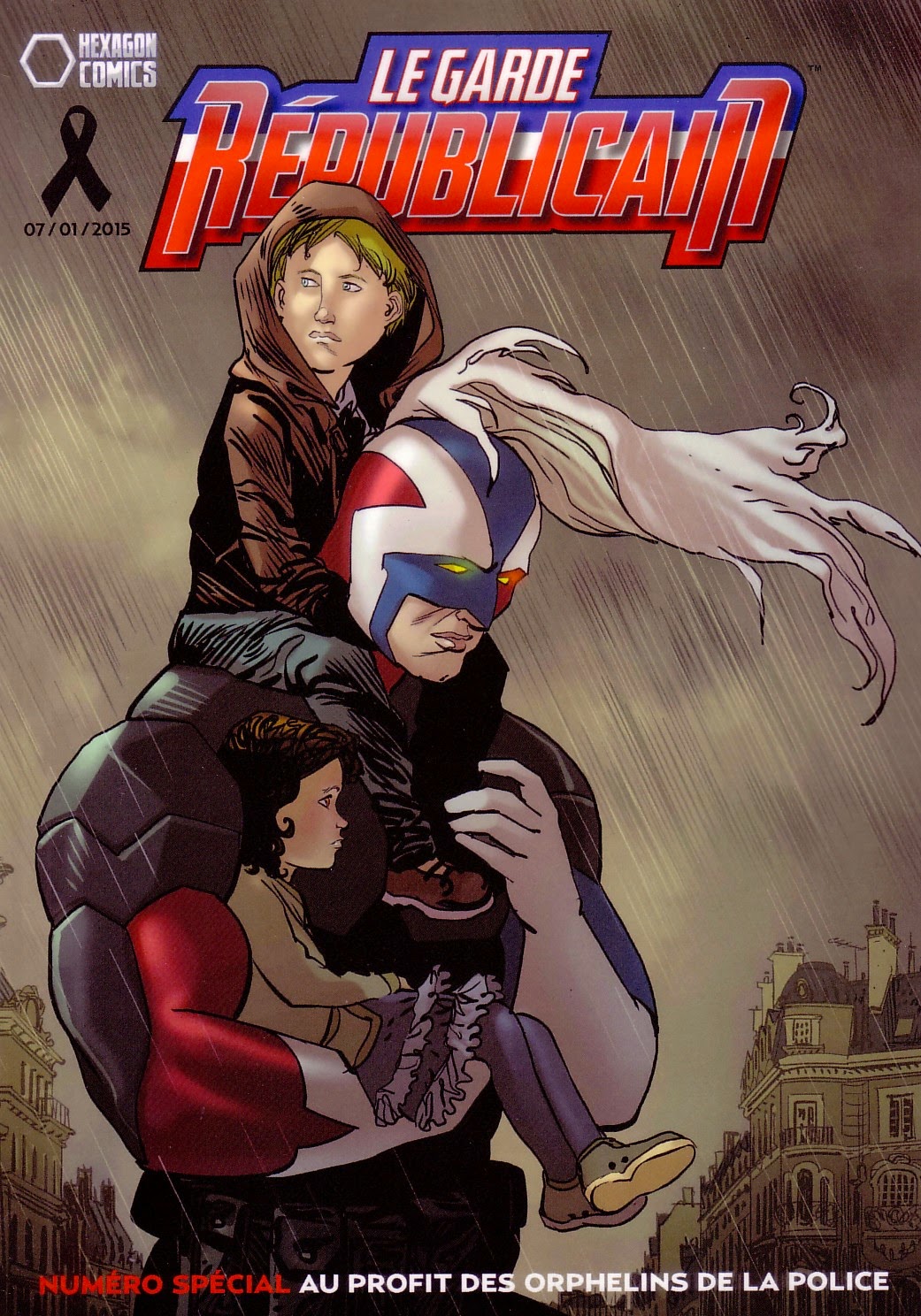 Les tristes événements liés aux attentats contre Charlie Hebdo ont ému, secoué et interpellé beaucoup d'entre nous. Thierry Mornet, alias Terry Stillborn, a souhaité rendre hommage aux victimes en mettant en scène son héros, le Garde Républicain, dans un numéro spécial dont les bénéfices des ventes iront aux orphelins de la police. Pour réaliser un tel album, de nombreux auteurs se sont prêtés volontaires pour apporter une illustration, un texte ou une bande dessinée. Si l'on retrouve une bien jolie galerie de dessins allant de Chris Malgrain à Charlie Adlard, ce sont surtout les deux récits qui apportent un intérêt supplémentaire aux lecteurs. Le premier est de Terry Stillborn et mis en images par Benjamin Blasco-Martinez. En quelques pages, les deux auteurs reviennent sur l'importance qu'auraient pu avoir le héros et Marianne dans une situation similaire à celle que l'on a connue. De façon intelligente, cette histoire revient sur les maux actuels. Ensuite, nous avons une bande dessinée réalisée par Laurent Lefeuvre et Didier Teste qui nous montre le travail de policiers dans un quotidien bien différent des clichés. Très éloignée des récits de super-héros, cette histoire a le mérite de montrer que les valeurs de solidarité sont les plus nobles. Pour ne pas oublier et participer à une bonne action...