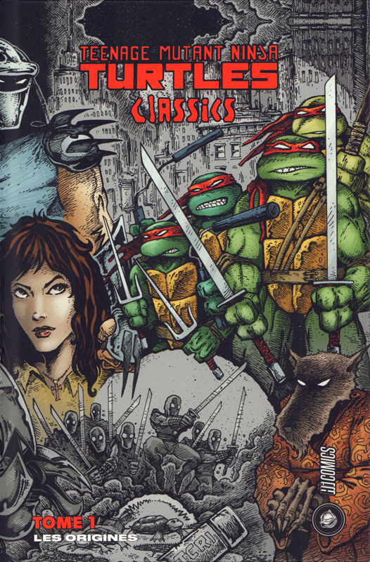 Tout le monde connaît les Tortues Ninja mais connaît-on vraiment l'origine de nos guerrières mutantes? Ce tome 1 de la version classique est donc un véritable bonheur pour les fans et une curiosité pour les autres. Sept numéros y sont republiés, le premier datant de 1984 et qui marque l'apparition des quatre héros. Ce projet un peu fou à la base sent le délicieux effet rétro avec un brin d'amateurisme très attachant. Les deux auteurs Peter Laird et Kevin Eastman ne s'imaginaient pas que la série ferait un grand succès et pourtant, ils ont petit à petit pu en vivre. Chaque issue est commentée par les auteurs qui livrent de nombreuses anecdotes savoureuses et des analyses planche par planche. On retrouve donc avec bonheur ce que devrait être une bonne histoire des Tortues : de l'action et un côté cool et fun. Chaque récit joue donc sur un rythme d'enfer avec toutefois des mises au point sur la série par petites touches. Les amateurs seront ravis de voir ou revoir les circonstances des transformations des Tortues et de leur maitre ou encore l'apparition de leur ennemi de toujours, Shredder et de leur amie April. La continuité des récits est habile mais la part de nouveautés est également bien trouvée. Les Tortues Ninja peuvent nous amener n'importe où et même dans l'espace (les auteurs sont fans de Star Wars) ! L'aspect le plus fun de cette réédition réside dans le graphisme. Le noir et blanc qui joue sur des aplats gris est superbe et malgré une profusion de détails, il reste très lisible. Les nombreuses scènes de baston sont spectaculaires et font écho à l'art de Jack Kirby, tout en peignant des villes crasseuses à la façon de Richard Corben. On regrettera juste que les Tortues soient impossibles à différencier. Des origines indispensables pour les aficionados.