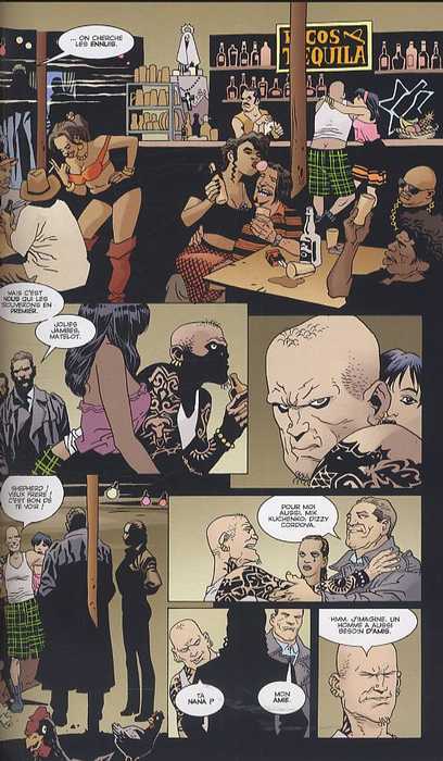 Le scénario avance doucement mais sûrement dans ce sixième tome contenant les chapitres 26 à 30. Pour rappel, la série devrait se terminer sur un centième épisode… De quoi voir venir ! Mais aussi d’y perdre de nouveaux lecteurs. C’est pourquoi Brian Azzarello a la bonne idée de débuter ce tome par un chapitre faisant office de rétrospective déguisée. Il permet ainsi aux nouveaux lecteurs, mais aussi aux anciens, de raccrocher les wagons d’un polar minutieusement construit. On y découvre un monde pourri par la corruption et la violence où des organisations ont la main mise sur le pouvoir. La suite reprend ensuite le cours de l’histoire et apporte son lot de surprises avec les apparitions du mystérieux agent Graves et de la combative Dizzy. On ne s’ennuie certes pas une seule seconde, mais le volet est moins original que ses prédécesseurs et ce n’est que dans la seconde partie que l’on retrouve un rythme plus enlevé. Par contre, niveau constance, Eduardo Risso impressionne. Son style atypique fait une nouvelle fois merveille tant il est parfaitement lisible à chaque case. Le premier chapitre contient également son lot de surprise côté dessins, puisque plusieurs artistes de renom, comme Frank Miller, Paul Pope, Jim Lee ou Dave Gibbons, ont illustré une pleine page. Ce polar se suit toujours avec intérêt et l’on a hâte de voir où ses deux auteurs vont nous emmener. A découvrir pour les amateurs du genre…