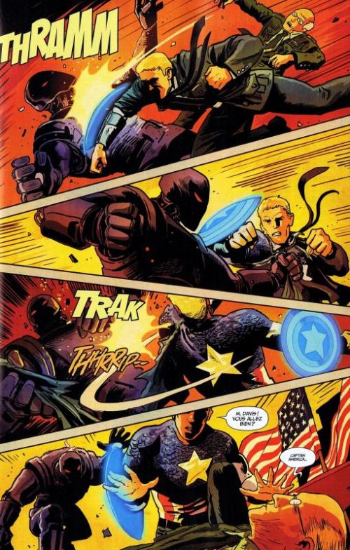 Ed Brubaker est probablement le scénariste qui a apporté le plus de choses au personnage et à la série de Captain America. Après de longues années à nous raconter les exploits de la Bannière étoilée, l'auteur tire sa révérence dans la série mère (à lire dans la revue Avengers) et dans cet Extra présentant une facette assez méconnue du costume de Cap'. en effet, alors que Bucky et que Steve Rogers ont disparu pendant la seconde guerre mondiale, et avant qu'ils ne réapparaissent des décennies après, leur rôle a été repris par des remplaçants. Les quatre épisodes d'Ed Brubaker et de James Asmus (qui se charge des dialogues) mettent en avant ceux qui eurent la lourde tâche d'enfiler les costumes après leurs idoles. Le scénario est comme toujours très habile et mêle action, espionnage et histoire avec un talent monstre. Les dessins de Francesco Francavilla sont toujours aussi originaux et l'italien figure aujourd'hui comme l'un des artistes les plus atypiques de l'industrie du comics de super héros. Pour compléter la revue, deux épisodes assez courts ont été inclus. Le premier est de Cullen Bunn et de Jason Latour. Il prend place dans une ville dévastée par une catastrophe naturelle. Ce récit est vraiment sympathique et vaut le coup d’œil. C'est un peu moins le cas du suivant qui outre un style visuel trop parodique finit par manquer le coche avec une histoire très basique. C'est donc la fin de l'empreinte Brubaker sur l'une des séries de Captain America, on y reviendra c'est sûr avec grand plaisir dans quelques années. Un run mémorable !