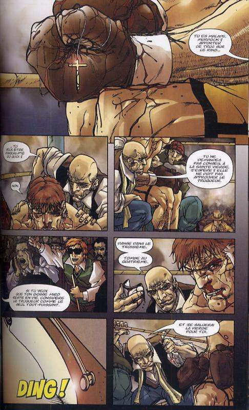 Daredevil est un des super héros les plus populaires de Marvel. Si la série principale se révèle de grande qualité (les épisodes écrits par Bendis sont géniaux), celle-ci ne s'était jamais attardée sur le père de l'avocat masqué. C'est désormais chose faite avec ce one shot consacré au bien nommé Jack Murdock. Prenant en compte son statut de petite frappe (ou plutôt grosse, lorsqu'on le voit à l'œuvre) pour un parrain local, les auteurs mettent en avant sa relation houleuse avec Maggie, la mère de Matt, qui les abandonnera pour se faire bonne sœur ! Hanté par cette décision injuste, Jack erre sans trop savoir comment éduquer Matt, ni même savoir que faire de son existence. Au moment où il voudra lâcher son patron, il reviendra à ses premières amours : la boxe. Bien évidemment, le scénario ne se poursuit pas vraiment de façon très gaie, mais l'histoire est bien menée. Classique (et manichéenne), celle-ci rappellera de nombreux films aux amateurs, et saura rester efficace jusqu'au bout. Aux dessins (et co-scénariste aussi), Carmine Di Giandomenico fournit une prestation soignée. Son trait original plaira immédiatement ou non, mais ne laissera pas de marbre. Loin d’être indispensable, cet épisode inédit de la vie de Matt Murdock se révèle intéressant, focalisant sur un personnage attachant : Jack Murdock.