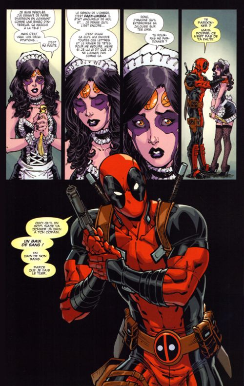 Depuis le succès des films , le mercenaire déjanté est omniprésent dans les publications de Marvel qui surfe sur l'engouement d'un large public. Ainsi, Deadpool est assaisonné à toutes les sauces et parfois ça devient franchement tiré par les cheveux. On imagine la difficulté des scénaristes qui doivent sans cesse rechercher un nouvel angle d'approche à un personnage autant sollicité. Joshua Corin imagine ainsi une aventure rappelant le doux parfum des romans d'Agatha Christie mais en mode complétement déjanté. Car oui, c'est du Deadpool avec son lot de loufoqueries débridées menées tambour battant agrémentées d'une galerie de personnages hilarants. Le talent de l'auteur réside dans sa capacité à créer des dialogues percutants et des ressorts comiques qui font mouche. Le dessin nerveux de Todd Nauck fait le job et colle très bien à l'univers délirant de l'anti-héros. C'est drôle et bien réalisé et l'on s'amuse à jouer à ce pseudo cluedo sous acide. Alors qui a tué le colonel Moutarde avec des chimichangas dans le living room ?