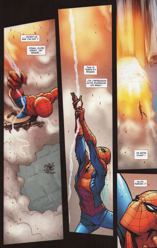On vous l'a dit le mois dernier, ces épisodes placés sous appellation Big Time ont totalement relancé la série. Et c'est Dan Slott qui s'en charge, en manipulant avec brio tous les thèmes chers aux fans des aventures du Tisseur. Les six épisodes de cet opus sont marqués par un rythme trépidant et par la présence de très nombreux ennemis ; pour certains "nouveaux", à l'instar de Phil Ulrich, dernier Super-Bouffon en date, pour d'autres très anciens mais remis au goût du jour, comme le Scorpion et l'Anti-Araignée, sans même parler du Caïd. Bien sûr, l'humour accompagne toujours la volée de coups que l'Araignée inflige à ses ennemis, tout comme il continue à plaisanter lorsqu'il est ridiculisé... Ajoutons deux ou trois idées habiles qui débouchent sur l'élaboration d'un nouveau costume high-tech et c'est un régal pour le fan. Cela fait maintenant un bout de temps qu'on n'avait pas vu Spidey en habits neufs ! Côté civil, notre Peter Parker semble également vivre la période la plus sereine de sa vie. Finie la sempiternelle complainte du loser : il décroche un job de rêve, où ses compétences de scientos peuvent enfin trouver un aboutissement digne d'intérêt, qui plus est lucratif. Au point où il s'achète un appart' ! Peter Parker, blindé aux as, qui aurait mit un dollar là dessus ? Et enfin, le voici à nouveau "in love", au point où MJ commence à l'avoir amère. Là aussi, la roue tourne... Voilà pour le très bon travail du scénariste. Quant aux dessinateurs, dire qu'ils sont à la hauteur serait presque injurieux, parce qu'ils s'avèrent parfaits pour illustrer ces aventures. Humberto Ramos continue, doucement mais sûrement, à imposer un style qui plaira à toutes les tranches d'âge. Moderne, dynamique, il renvoie à une synthèse du trait de Mark Bagley et de John Romita Jr, pour trouver son identité. Quant à Stefano Caselli, s'il signe le début de l'épisode dans la droite lignée de son graphisme des Secret Warriors, il amène très vite une précision remarquable à ses planches. Ses portraits sont très expressifs et les scènes d'action sont époustouflantes. Un vrai travail d'artiste... Enfin, Paolo Siquiera et Ronan Cliquet De Oliveira ne déméritent pas non plus. Pour conclure, ce mensuel, à ce prix là, c'est une aubaine !