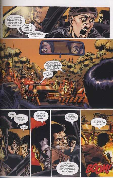 Les morts vivants sont revenus à la mode dans le petit monde du 9e art ! Des séries à succès comme Walking Dead ou Marvel Zombies n'y sont certainement pas pour rien. Ce bien nommé Zombie nous propose de suivre un récit très classique où l'on retrouve (bien évidemment) des morts vivants et un groupe de survivants s'entredéchirant. Le début du titre est plutôt bien vu, avec la fausse piste polar de la prise d'otage, qui dérape soudain vers l'horreur. Ce schéma basique se retrouve étrangement dans bon nombre de production du genre. Les rebondissements sont réguliers, mais ils peinent à surprendre les habitués du genre. En parlant d'habitué, il est plutôt rassurant de retrouver Kyle Hotz aux dessins. Son trait est soigné et l'ensemble est assez détaillé. L'auteur se fait plaisir et nous le montre à l'aide de tripes pendantes ou arrachées, voire à grands coups de têtes explosées ! Malgré un scénario peu innovant et un visuel bien à propos, ce Zombie ne révolutionne pas le genre mais il a le mérite d'être efficace. Pour amateurs du genre donc !