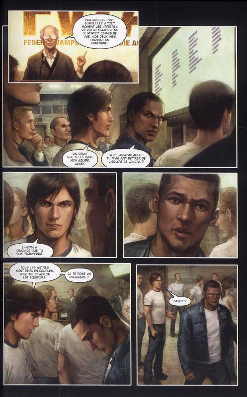 L’intérêt de ce dénouement réside dans la révélation des lourds secrets de famille qui pèsent sur la conscience du chef spirituel du FVZA. On va enfin découvrir ce qui justifie la tension de la scène introductive du Tome 1, où Landra, en larmes, tenait en joue son grand-père… David Hine (Spiderman Noir) a rondement mené sa barque, même si le thème est archi-exploité. Mais le côté gothique et même romantique est très respectueux de la mythologie vampirique. C’est donc une fin réussie qui est ici proposée. Curieusement, les Zombies ont en revanche totalement disparu de son intrigue, au fur et à mesure qu’elle a trouvé son développement. Un petit bémol, quant à la cohérence du scénario, mais le rythme nerveux et le visuel toujours aussi puissant, voire sanguinolent, gomment ce léger défaut. Il est à noter que Roy Allan Martinez (Global Frequency) reçoit le concours de Wayne Nichols (Star Wars) pour un graphisme qui ne varie pas d’un iota : âmes sensibles et phobiques de l’hémoglobine s’abstenir ! Enfin, la couverture, très respectueuses des dessins de la série, est signée Clint Langley, un autre habitué du comics tendance bourrin (Slaine première série et Slaine, Geste des Invasions).