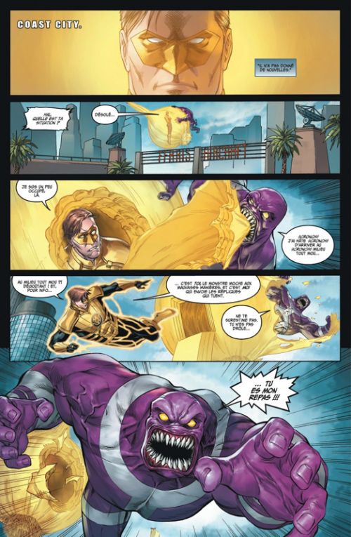 On ne redira jamais assez combien Injustice a offert un divertissement inspiré et jouissif à ses débuts. Le scénariste Tom Taylor était parvenu à jouer avec les personnages mythiques de DC avant de laisser la main à Brian Buccellato. Ce dernier s'est complètement raté et a multiplié les erreurs d'écriture, faisant perdre tout ce qui restait de l'attrait de la série. Après une quatrième année catastrophique, allait-il retrouver l'inspiration ? Si cette fois-ci, le camp de Superman n'affronte pas des Dieux, il va affronter des ennemis surpuissants mais bien plus classique. Si dans le fond, l'idée peut sembler adéquate, c'est dans la forme que Brian Buccellato se rate. Les rebondissements ne fonctionnent pas et on a même tendance à les trouver inexistant. Le scénariste cible mal les enjeux de son histoire et ne fait que rendre insupportable la lecture de cet opus. Côté dessin, Bruno Redondo, l'une des valeurs sûres depuis le début de la série, est bien peu présent. Mike S. Miller essaie de combler mais entre une qualité d'encrage laissant à désirer et des remplaçants peu concernés, l'expérience de lecture se fait désastreuse.