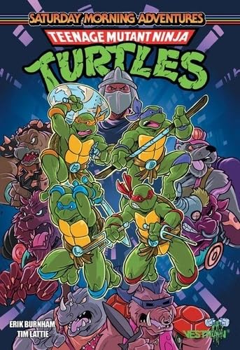 Que de chemin parcouru par la franchise des Tortues Ninja depuis sa création en 1984 par Kevin Eastman et Peter Laird ! 40 ans après leur création, Leonardo, Raphael, Donatello et Michelangelo font toujours recette si bien qu’une nouvelle série a vu le jour : Teenage Mutant Ninja Turtles : Saturday Morning Adventures. Concocté par le scénariste Erik Burnham et le dessinateur Tim Lattie, cette série surfe sur le succès du jeu vidéo Shredder’s Revenge en imaginant des « épisodes perdus » de la série TV des années 1980 – 1990 en version actuelle. Ainsi, dès le premier chapitre qui fait la part belle à la réalité virtuelle, les Tortues doivent faire face à une IA qui a buggé suite à un orage. Elles sont donc coincés dans un jeu vidéo et doivent à tout prix vaincre Shredder et les siens pour s’échapper ! Erik Burnham a donc opté au travers de ses scénarii pour un ton léger avec des histoires teintées d’humour et bourrées d’action. Ça n’apporte certes pas grand-chose à la saga mais ça respecte bien le cahier des charges de l’univers des Tortues, notamment via des dessins de Tim Lattie taillés pour une cible jeune. Il y a pas mal de peps ! En définitive, même si ce comic book est principalement destiné à un public jeune / ado qui n’a pas connu la série télévisée, l’ensemble se révèle plutôt sympathique et met en avant tous les personnages iconiques de l’animé. Voilà un excellent point d’entrée pour (re)découvrir les Tortues Ninja !