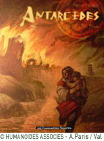 Alain Paris : Les Humanos me demandaient d’adapter une série, et j’avais proposé Pangée (3 romans) ou La Terre Creuse (10 romans)… mais Bruno a flashé sur Antarcidès. L’Héroïc-fantasy, ai-je dit, ça court les rues, on ne voit que ça. Si on veut se distinguer des autres cycles, a répondu Bruno, il nous faut un graphisme artistique… et il y a justement un dossier sur mon bureau. Il m’a envoyé les planches finalisées en couleurs directes, et c’est ainsi que ma collaboration avec Valérian « Nosferatu » Taramon a commencé.