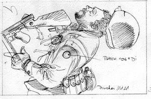 PJ : Sur une Folie…, j’ai eu de très bonnes relations avec Christian Godard. Je crois par contre que « l’assemblage » des dessinateurs manquait de cohérence (trop de styles différents) et que cela s’est senti dans le résultat final. J’ai tenté d’autres collaborations mais ça s’est rarement bien passé. Probablement parce que quand j’abandonne ma casquette de scénariste, je l’abandonne vraiment et complètement. D’où le fait que je dessine scrupuleusement ce qui est écrit par le scénariste. Toute autre approche me rendrait suspect de re-scénariser ce que je lis. Cela implique que s’il y a un problème narratif dans le découpage, il risque d’apparaître dans la planche dessinée. Or, c’est le boulot du scénariste de bétonner son découpage et de ne pas inclure de plans irréalisables. Personnellement, je m’astreins à découper tout mon récit scrupuleusement, tant sous forme d’écriture que de dessin. Ca peut paraître excessif mais j’ai absolument besoin de savoir où je vais. Cela dit, il y a des scénaristes dont j’admire vraiment le travail et avec qui j’adorerais collaborer. Mais quand je lance des bouteilles à la mer, on me répond rarement.