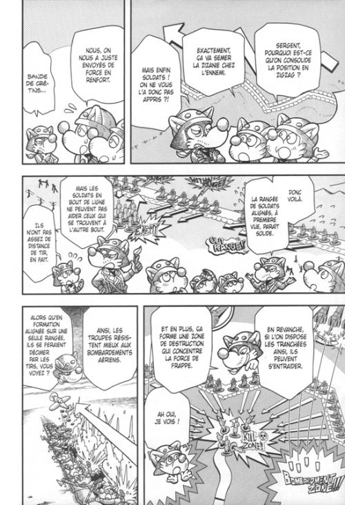 Des recrues naïves qui s’approchent du front, des hommes éprouvés par une guerre de tranchées et un lieutenant-colonel françois qui joue le bellâtre : voilà ce qu’a à proposer ce onzième volume. La première partie du volume s’attache à nous présenter les différents éléments, mais cela est fait avec exagération et longueurs : on s’attarde sur un enthousiasme démesuré, et le côté éprouvant de la guerre des tranchées a du mal à vraiment percer. On note par ailleurs que Tanya n’est présente qu’à partir de la deuxième partie. Malheureusement, ce n’est pas cela qui va relever le niveau : la demoiselle ne fait pas grand-chose et ce sont surtout les regards des autres qui sont scrutés par le récit. Pour une transition, celle-ci est longuette et peu convaincante.