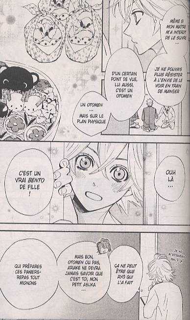 Après un premier volume qui nous présentait les personnages et nous familiarisait avec les « otomen », celui-ci attaque directement dans le vif du sujet : Asuka a des admirateurs (Ariake puis une fiancée potentielle) mais doit leur cacher sa véritable nature, tandis que Tachibana essaye de le mettre en couple avec Ryo en profitant de la fête de Noël (qui est idéale pour ce genre d’occasions chez nos amis nippons). Le scénario de base semble assez classique pour un shôjô mais détrompez-vous : l’auteur arrive subtilement à en utiliser les codes tout en les remaniant à sa sauce pour un rendu rythmé, drôle et charmant, et on passe donc un très bon moment à la lecture. Graphiquement aussi, les codes du genre sont utilisés avec abondance, de façon volontairement exagérée, mais cela passe très bien d’autant plus que c’est fait avec maîtrise : personnages soignés et très expressifs, tramage omniprésent (avec toujours des petits motifs mignons), cases fournies… En résumé, ce deuxième volume nous ravit autant que son prédécesseur et on a très envie de lire la suite.