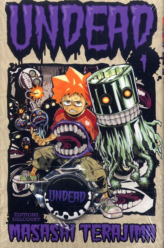 Avec cette histoire de jeune homme directement plongé dans un univers peuplé de monstres, le synopsis nous évoque un peu Darren shan mais le ton est ici résolument plus sombre. En effet, ce qui arrive à Taro est implacable et arrive très brusquement : sa mère est décapitée, son frère enlevé par un monstre (un undead), et lui-même est charcuté par un autre avant d’en devenir un à son tour afin de pouvoir les chasser. Ainsi, le lecteur est immergé aussi brutalement que le héros, ce qui renforce l’attachement à ce dernier tout en évitant le piège du pathos à cause de la tragédie. On suit alors le jeune homme en plein apprentissage de son métier de chasseur et, là encore, le récit se montre sans pitié : les faibles sont dévorés et coupés en morceaux, les cadavres sont pléthore et la réussite des missions n’est jamais garantie, ce qui est assez rare dans un shônen. Le scénario se montre donc original à plusieurs points de vue et le ton cru qui s’en dégage ajoute une touche plus vive au récit. En outre, les graphismes ont eux aussi un style propre à l’auteur à tous les niveaux. Les scènes d’action empruntent au punk et aux affiches seventies de film d’horreur, ce qui est à la fois original et fort sympathique. De plus, la violence n’est pas étouffée et, sans sombrer dans le gore pour autant, on a le droit à des morceaux de chair qui volent, ce qui ravira les amateurs du genre. On regrettera cependant que certaines planches soient trop chargées car on a parfois du mal à tout saisir. De plus, les personnages dégagent beaucoup de charisme et ont également un design original et agréable, même si le trait appuyé des silhouettes n’est pas toujours du meilleur effet. En tout cas, la personnalité du mangaka s’exprime pleinement à travers ce titre pour le moins original et le court format de la série (4 volumes) nous laisse à penser que la suite restera elle aussi dense et mouvementée.