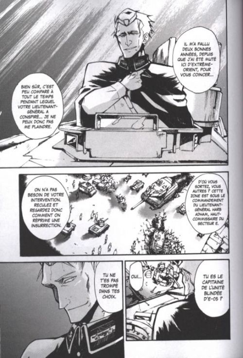Dans une grosse première moitié du volume, on peut suivre en parallèle l’évolution de la situation à E-05, le combat de Kidow contre Acht, et les derniers moments de la mère d’Ilie que cette dernière vient de « désactiver ». Si la fin des affrontements dans la cité est assez bien gérée, le combat Kidow-Acht tire par contre un peu en longueur et n’est par ailleurs pas toujours des plus lisibles graphiquement parlant. Quant aux quelques pages dédiées à Ilie et sa mère, elles sont un peu trop disséminées tout du long, ce qui fait que le tragique et l’émotion de cette scène ne passe pas aussi bien qu’il aurait fallu. Pour autant, ce dernier volume n’est pas désagréable à lire et remplit tout de même bien son contrat, d’autant que l’auteur prend ensuite le temps dans la dernière partie d’apporter quelques éléments de conclusion concernant les personnages : que comptent-ils faire désormais et quel est leur état d’esprit... Et pour ce que la mangaka n’a pas pu dire, elle le complète ensuite dans une postface. Pour conclure ce dernier tome, on a droit à deux histoires bonus : l’une raconte le quotidien d’Ilie lorsqu’elle travaillait au restaurant, et l’autre celle d’Acht lorsqu’il devait s’occuper d’Ilie au centre de recherche alors que la mère de cette dernière avait été intégrée au trône. Malgré le ton plus sérieux de la seconde histoire, ces deux bonus permettent de quitter la série sur une note plus légère et sont appréciables. Une bonne fin de série en résumé, pour une histoire qui aura su se maintenir du début à la fin.