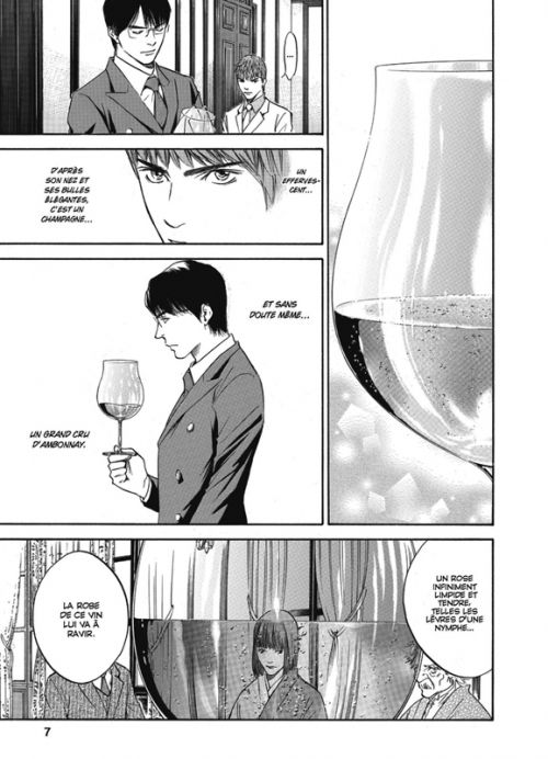 Le volet précédent proposait la fin de la quête de Shizuku des vins à proposer en mariage avec le repas du concours des officiers des Gouttes de Dieu devant décider lequel des fils de Kanzaki obtiendra les feuillets de son testament renfermant la description du cru ultime. Il est maintenant l’heure de l’affrontement, et on retrouve donc Shizuku et Issei devant leurs juges pour la dégustation des plats imposés avec les vins qu’ils ont ramenés. Au menu, la ratatouille en entrée, suivie d’un saumon meunière sauce au vin blanc, puis d’un rôti d’agneau de prés-salés, et enfin en dessert un gâteau au chocolat sur lit de crème brûlée. Les choix des vins proposés par les deux concurrents sont à chaque fois très différents, tout comme les descriptions qu’ils font de ces mariages lors des dégustations. Peut-être qu’on en attendait trop, ou qu’après tant et tant de volumes remplis de descriptions imagées, on commence à être un peu blasés, mais en tout cas celles proposées cette fois ne sont pas toujours si convaincantes ou si bien exprimées que cela, même si certaines sortent tout de même du lot. Les rebondissements suivent les ficelles habituelles de la série, aussi le suspense est ménagé à chaque plat où le verdict ne penche en faveur de l’un des protagonistes que lors du rendu de l’avis du tout dernier juré. Malgré tout, les deux derniers chapitres remontent un peu le niveau, notamment par l’introduction de souvenirs personnels des protagonistes. Les graphismes sont très soignés comme toujours, de ce côté-là rien à redire, même si le dessinateur semble en pilote automatique et ne dénote pas de ses habitudes. Un volume un peu en-dessous de nos attentes donc, mais qui reste tout de même intéressant. Le tome 10 devrait sacrer le gagnant de la dernière manche de ce duel, attendons de voir ça.