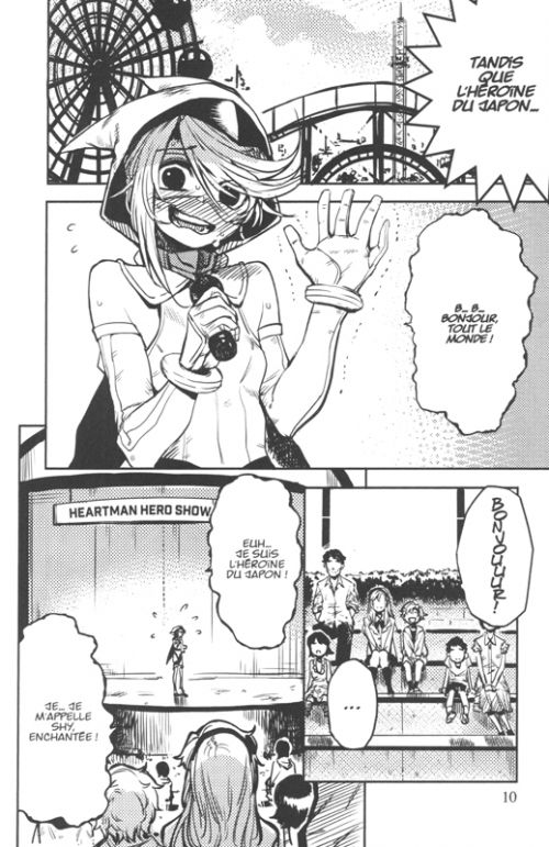 Le moins que l’on puisse dire, c’est que l’histoire ne s’embarrasse pas avec une longue présentation de son univers et les raisons de la présence de héros. Néanmoins, cela ne gêne pas du tout pour s’immerger dans la série et faire connaissance avec Shy, une héroïne ultra timide qui vole au secours des personnes en détresse. Entre son énorme timidité et un gros manque de confiance en elle, la demoiselle a bien du mal à se montrer aussi impressionnante que ses homologues, et elle doit lutter pour sortir de sa coquille. Il y a bien sûr un peu d’humour avec les réactions très gênées de la jeune fille, mais le récit s’intéresse surtout à l’évolution de la belle au contact des autres et les conséquences de ses actes dans la vie des autres. L’action est donc là pour servir la psychologie des personnages, c’est assez bien fait et cela ne manque ni de rythme ni d’ambition. Les dessins, énergiques, savent donner du charisme aux personnages et rendre tout cela très vivant. Un bon début !