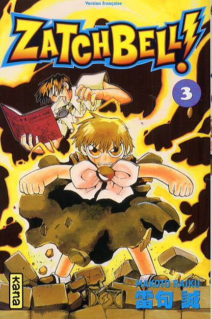 Encore un nouveau shonen chez Kana qui diversifie sa collection avec ce manga destiné à un jeune public à l'instar de Yu-Gi-Oh !. Le principe n'est bien sûr pas celui du jeu de carte mais plutôt des Pokemon où l'humain lit des formules magiques que le démon reproduit. Le challenge consiste à trouver la bonne formule au bon moment, d'autant que comme dans tout bon shonen, la progression est importante, matérialisée ici par les formules qui apparaissent au fil des combats remportés. Les démons ressemblent à des enfants et n'ont rien de l'hideuse créature démoniaque cornue et malfaisante. L'accent est même plutôt mis sur l'aspect gentil des personnages principaux qui ne veulent pas faire de mal. C'est même leur leitmotiv pour le tournoi qui se déroule un peu à la mode Highlander où ils se sentent les uns les autres et où il ne peut en rester qu'un. Faite d'épisodes assez courts, l'histoire se déroule rapidement et c'est le signe que l'on ne s'y ennuie pas. Ce shonen évite en effet le piège de la prise au sérieux du gentil qui veut aider le monde par une autodérision assez sympathique. Le dessin est proche de Rave avec des positions de personnages parfois déformés et des traits fins un peu carré. Les décors sont simplistes mais l'ensemble est de bonne qualité. Très actuel sans être un poid lourd du genre, ZatchBell réserve une lecture sympathique mais sans plus pour le moment...