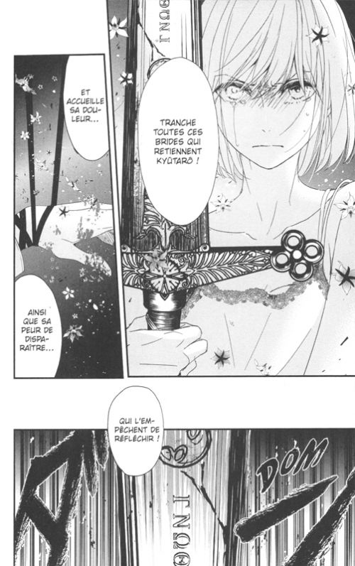 Ce quinzième tome se décompose en deux parties, l'une un peu molle et l'autre assez ténébreuse. Dans un premier temps, il est ainsi question de l'union charnelle entre Fumi et Kûtarô : la menace du serpent plane sur leur amour et il y a beaucoup de discussions sur le sujet. Même si cela reste intéressant et qu'il y a un changement de taille dans la relation du couple, il faut reconnaître qu'il y a quelques longueurs et que le récit manque un peu de rythme. Heureusement, la seconde partie remet l'action et la tension au goût du jour. L'histoire se recentre autour des serpents et trouve une idée pour se relancer efficacement. Ce regain de vitalité s'accompagne d'une ambiance sombre et de mystères, si bien qu'on en oublie la mollesse du début. Voilà un bon rattrapage plein de surprises et de promesses. A suivre ?