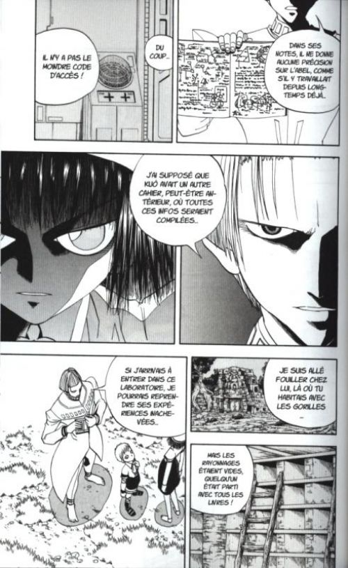 La fameuse tour de Babel est au centre de ce volume car tous les personnages (humains, animaux et chimères) convergent vers cet endroit ou tentent de le défendre. Tout d’abord, Capri et ses lions tentent d’empêcher Taro et ses amis animaux d’avancer vers la tour, tandis que Riemu obtient des informations très intéressantes sur le sujet. Une fois que tout cela est mis au clair, les choses avancent grandement puisqu’on pénètre réellement dans la tour et qu’on découvre de façon très musclée les dangers qui y rôdent, ce qu’il est advenu des humains précédents et la vérité sur Giller. Le récit fait la part belle à l’action mais également aux révélations, ce qui le rend toujours plus riche, plus fort et plus intense. La lecture ne se montre pas ennuyeuse du tout, l’histoire ne cessant de progresser et de s’amplifier. On est donc une fois de plus conquis, happé et charmé par la lecture : assurément du tout bon !