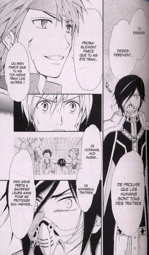 Hinohara va se battre pendant tout ce volet et son combat est loin d’être fini. Néanmoins, ce n’est pas parce que l’affrontement s’étire en longueur que l’on s’ennuie pour autant. Déjà, le fait que le jeune homme ne puisse pas s’exprimer comme il le souhaite complique les choses. Mais le plus prenant arrive lorsqu’il doit décider si Kadowaki est un ami ou un ennemi et ce, juste avant que l’intéressé lui fasse face. Mais ce n’est pas tout, un fourreau divin se fait asservir à la fin du volume et cela change de nouveau la donne. Avec ces rebondissements et décisions, l’histoire vit au même rythme que le combat progresse : on ne peut donc pas s’ennuyer et le rythme effréné ne fait que nous absorber encore plus au cœur du récit. Vite, vite, vite, la suite !