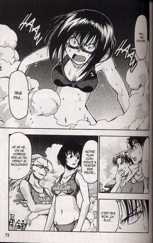 La finale entamée dans le volume précédent se poursuit ici : après avoir annoncé Higasaki en vainqueur du premier set, la deuxième partie du match peut enfin avoir lieu. Là, les difficultés vont vraiment commencer pour Nanasé : sa carrure de moineau l’empêche en effet de contrer quelqu’un qui frappe beaucoup plus fort qu’elle et, pour compenser, elle va devoir redoubler d’énergie pour faire un maximum de smashes. De plus, Kotomi étant incapable de smasher et de protéger sa coéquipière, le duo de Higasaki est en bien mauvaise posture. Entre une jeune fille motivée mais limitée par son corps et une autre prisonnière du passé, les demoiselles n’ont pas fière allure et, malgré les erreurs de leurs adversaires, le deuxième set s’annonce bien mal parti. Le suspense est donc à son comble car on ne sait pas si elles arriveront ou non à remonter la pente : jamais un match de beach-volley n’aura été aussi passionnant à suivre et on meurt d’envie de lire le prochain volume pour savoir quelle équipe participera à la coupe Madonna.