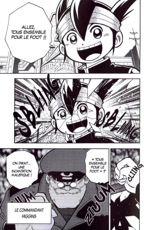 Deuxième série de l’éditeur à concourir cette année pour le prix du plus long titre, Inazuma Eleven X-tra – Le film : Tous unis contre l’équipe ultime Ogre ! n’est pas un anime comics du film éponyme comme son nom le laisse a priori croire. Non, il s’agit ici d’un recueil d’histoires de tailles variées (allant de quelques pages à un tiers du volume) qui se déroulent pendant ou autour du scénario du long-métrage. Pour commencer, la nouvelle la plus longue est l’affrontement des Inazuma Eleven contre l’équipe Ogre venue du futur afin d’anéantir la passion du football qui a d’après eux conduit leur nation sur la pente de la décadence, à l’instar du scénario de la version animée. Si les fans seront heureux de voir cette adaptation papier, il n’en reste pas moins qu’on quitte finalement l’affrontement au moment d’un gros rebondissement et que l’histoire n’est pas conclue ! Cela en amènera certes certains à se procurer le film, et ceux qui l’ont déjà vu savent déjà ce qu’il se passe après, mais la démarche reste néanmoins déconcertante dans un cas comme dans l’autre... Après cela, trois histoires plus courtes nous parlent tour à tour de l’arrivée de l’arrière-petit-fils de Mark Evans à notre époque où il réunit de puissants coéquipiers pour venir en aide à son aïeul contre l’équipe venue du futur, de l’entraînement d’Axel Blaze à Okinawa entre deux tournois et de son coaching d’un jeune joueur, et enfin d’un affrontement entre Axel Blaze et Mark Evans au meilleur de leur forme. Comme d’habitude, l’humour et la fougue du récit nous emportent sans mal et, de ce point de vue-là, les amateurs ne seront pas déçus. Avec en plus deux petites erreurs dans les pages couleurs de l’intro (une lettre manquante et surtout le fait qu’on nous parle de « bouquet final » pour l’histoire qui se déroule... au début !), c’est donc un volume en demi-teinte qu’il nous est donné de lire ici, avant même que l’on ne parle de la teneur des scénarios en eux-mêmes qui se montrent ultra-simplistes. A réserver aux plus accros à la série, donc.