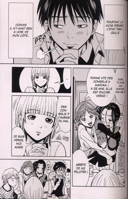 Trois jeunes femmes font perdre la tête à Kido dans ce 6ème volume. Dans un premier temps, le jeune homme tente sa chance avec Emiru : celle-ci lui a déjà fait des avances et il pense que cela serait finalement facile d’en faire sa petite amie. Si on s’attend à ce que la belle ne cède pas simplement, la façon dont elle retourne la situation pour continuer à faire de Kido sa proie manque furieusement de crédibilité et cela ne fait que la rendre toujours aussi antipathique. Après cela, Kido et ses camardes passent en seconde année et on nous annonce un nouveau cycle, mais il n’y a rien de neuf car les relations entre les personnages n’évoluent pas plus et les règles du jeu d’Emiru sont toujours en vigueur. Là, une demoiselle va faire son apparition : complexée d’être encore vierge à 22 ans, elle va se jeter sur Kido qui ne sait pas comment faire pour lui faire plaisir tout en éloignant Emiru du trou. Là aussi, on a du mal à croire aux comportements des protagonistes, même si les choses sont tout de même plus faciles à avaler. Enfin, une jeune femme qui fait le modèle nu pour les cours d’arts jette son dévolu sur Kido et compte s’adonner au plaisir sans lendemain avec lui. Entre des grosses ficelles scénaristiques et des rebondissements improbables, on ne profite pas vraiment du scénario. Du côté des graphismes, les planches nous permettent en revanche de nous rincer l’œil devant les formes de ces demoiselles et, de ce point de vue, on n’est pas déçu un seul instant, bien au contraire. Toutefois, cela n’est pas suffisant pour nous faire oublier que ce volume ne remplit pas ses promesses. Dommage.