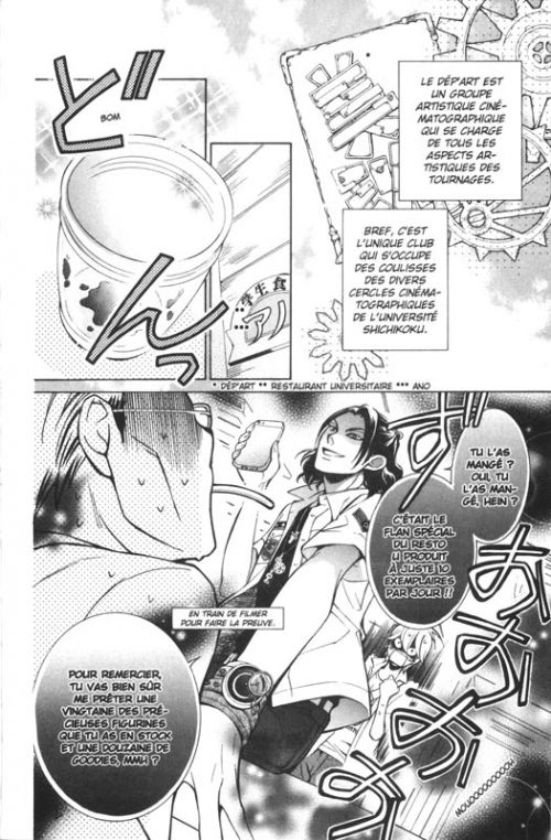 Moyennement séduisant, le premier volet présentait tout de même des éléments encourageants pour la suite. Une fois de plus, les membres du département artistique ont une vie mouvementée sauf qu’on ne se contente plus de suivre Ranmaru. Ce dernier sert surtout de fil conducteur et fait office de lien pour enchaîner des histoires différentes. Ainsi, les chapitres défilant, on passe d’un personnage à l’autre : chaque membre du club a une vie trépidante car il possède un grain de folie et un talent particulier. C’est très rythmé, mais l’énergie dépensée n’est pas complètement à la hauteur des récits qui restent très sentimentaux. L’aspect cinématographique du contexte est moins présent, et on le regrette un peu. Toutefois, la palette de portraits est relativement sympathique et on ne s’ennuie pas complètement. On attend tout de même la suite pour que le tout décolle vraiment.