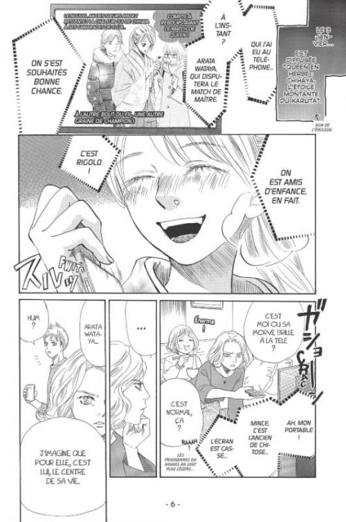 Si le karuta reste toujours le sujet principal, on n'assiste à aucune partie ici. Au lieu de cela, on voit les préparatifs des participants aux tournois : écoutes répétées des dictées, choix d'un kimono, voyage... Le scénario nous invite dans le quotidien des personnages, rend le sujet plus humain et, malgré quelques exagérations, plus vivant. Les dessins jouent eux aussi un peu plus avec la mise en scène et insufflent un bon dynamisme. Un bon volet.