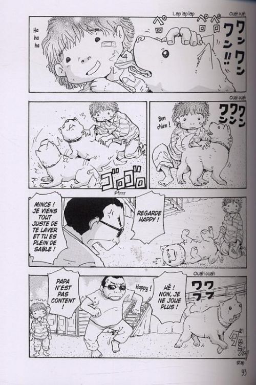 Après un émouvant premier volume dans lequel un homme partait pour sa dernière aventure en compagnie de son chien Happy, ce second volet nous raconte l’histoire de deux autres chiens qui vont être amenés à croiser la route du duo. Cependant, ce ne sont pas ces rencontres qui font le charme de ce titre ; elles ne servent qu’à offrir un sympathique lien avec le premier volume. Ici, ce sont les deux nouveaux portraits humains qui nous intéressent : une vieille dame revêche bien décidée à mourir qui va reprendre envie de vivre grâce à une petite chienne malade, et un petit garçon négligé par sa mère qui va voler un petit chien dont personne ne veut dans une animalerie et dont la vie ressemble fortement à celle de l’enfant. Une fois encore, l’animal permet de rattacher l’humain à la vie et de lui redonner de l’amour et de la chaleur : les personnages ont beau être tristes, désespérés et en mauvaise santé, leur chien leur permet d’apaiser leurs maux et, finalement, de les sauver d’une mort certaine, d’une profonde dépression ou d’un terrible abandon de soi. Les sentiments sont fortement mis à l’honneur, ce qui explique qu’on ne peut qu’avoir envie de pleurer à certains moments, la justesse et le réalisme des portraits renforçant la sensibilité et la force des émotions ressenties à la lecture. Ce second volume est donc aussi émouvant et bouleversant que son prédécesseur : aucune excuse pour ne pas vous jeter dessus !