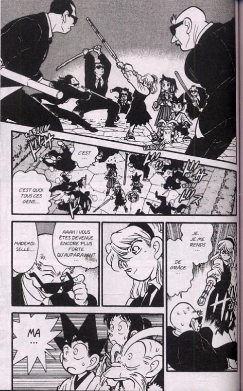 Le premier tiers est consacré à l’affrontement tant attendu de Yaiba et Onimaru. Les deux personnages vont devoir redoubler d’effort pour ce duel à mort et leurs épées vont elles aussi déployer une nouvelle énergie pour aider leur propriétaire à se battre. Néanmoins, les coups s’enchaînent à vie allure sans qu’on n’ait le temps d’apprécier vraiment les nouvelles techniques mise en place : de fait, on s’ennuie assez et on a du mal à être immergé dans le récit. Si le vainqueur du combat est assez facile à deviner, on a tout de même le droit à une surprise en ce qui concerne le dénouement. Puis, les deux autres tiers du tome lancent ce qui doit être le dernier axe de la série (qui s’arrête au volume suivant) avec une jeune fille qui se présente comme la sœur de Yaiba et qui a des révélations sur sa famille. Bien qu’on apprécie d’en apprendre un peu plus sur le jeune homme et sur le père de ce dernier, on est assez dubitatif par rapport à la façon dont cela est amené. L’introduction de cette partie est en effet très abrupte, un peu comme si l’auteur avait inventé cela à la va-vite, et on a du mal à adhérer à tout cela. Enfin, avec le fait qu’un tournoi début en fin de volume alors que le prochain sera le dernier, on craint que la conclusion ne soit précipitée : espérons que nos craintes ne se réalisent pas.