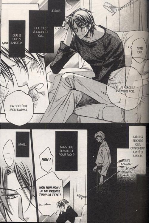 Maintenant que Jinnai et Reiichiro sont enfin ensemble, l’heure est à la jalousie avec l’arrivée d’un troisième larron qui va semer le doute dans le cœur des deux amoureux. Ainsi, Kijima (le fameux nouveau) se montre très proche de Jinnai avec qui il a autrefois travaillé et n’hésite pas à être entreprenant avec Reiichiro, pendant que chacun des deux tourtereaux se pose des questions sur les sentiments de l’autre et lui cache des choses. La situation est assez classique et ne surprendra personne du début à la fin mais, au moins, le rendu est divertissant car les personnages ne laissent pas les quiproquos s’installer, les choses avancent à bon rythme et quelques scènes coquines viennent pimenter le tout. De plus, la narration n’est pas précipitée pour autant et il va tout de même falloir attendre le volume suivant pour avoir le dénouement de tout cela. Les surprises ne seront probablement pas au rendez-vous mais, si l’ensemble est aussi efficace qu’ici, cela ne sera pas gênant. A suivre ?
