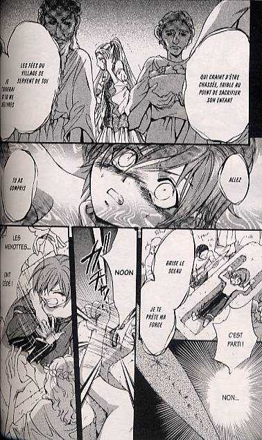 Malgré de l’action beaucoup plus présente, ce tome 2 confirme malheureusement les défauts qui plombaient déjà le précédent volume. A l’histoire sans surprise et aux personnages sans charisme s’ajoute maintenant les habituels conflits entre frère ennemis (Ian / Tagaké et Kaito / Lei-Vun) et des histoires d’abus sexuels sur des adolescents. De plus, l’ajout gratuit en milieu de volume du look rock gothique pour la tenue de certains personnages (notamment Line) ne colle pas vraiment avec le thème des fées. Néanmoins, même si tout est assez convenu, on s’ennuie quand même moins que pendant la lecture du précédent volume. Mais tout se déroule encore une fois trop vite. Le souhait de l’auteur de faire une histoire courte n’était peut-être pas très judicieux car les événements s’enchaînent sans laisser le temps à l’intrigue de se poser correctement. Du coup, impossible de se plonger complètement dans la lecture et l’on referme ce volume avec une impression de gâchis. On attend de voir la fin dans le prochain volume pour voir si cela relève le niveau ou si elle sera aussi prévisible que le laisse supposer la trame scénaristique.