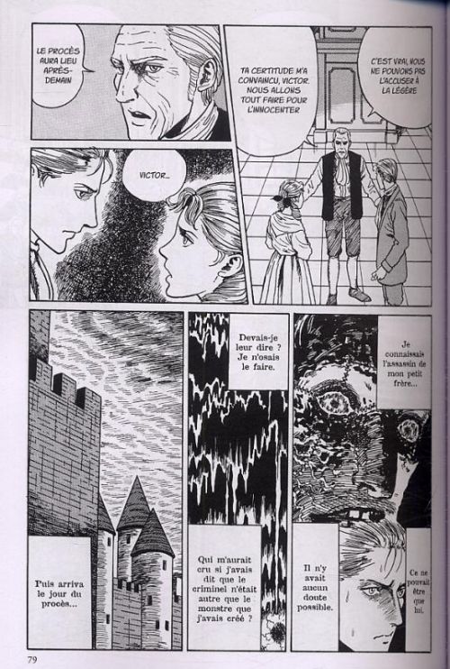 Junji Ito qui revisite le fameux Frankenstein ? Avec un tel synopsis, inutile de préciser qu’on n’a pas besoin d’hésiter avant de s’emparer ce de volume. Dès les premières pages, on sait que le docteur Frankenstein va réussir à créer un être vivant, mais c’est en étant recueilli par un navire qu’il va raconter son histoire, celle d’un homme dont l’ambition l’a rendu fou et l’a conduit à commettre l’irréparable en créant une créature monstrueuses à bien des égards. Il est vrai qu’il n’y a pas de surprise dans le déroulement de l’intrigue, mais le mangaka parvient tout de même à nous proposer quelques chose d’intéressant en intégrant sa patte. Ainsi, les graphismes nous permettent de ressentir l’ambiance oppressante et la montée en puissance de la tension, si bien qu’on reste tout de même agrippé à chaque page. La narration est menée avec efficacité, les personnages ont le temps de raconter leur histoire et on parvient à ressentir de la compassion pour la créature et son créateur. Evidemment, le style de l’auteur correspond bien à l’époque (le 19ème siècle), ce qui facilite d’autant plus l’immersion dans le récit. On notera au passage que l’adaptation française souffre de quelques défauts grammaticaux et d’une encre qui bave un peu. En outre, ce volume marque les dix ans de carrière de Junji Ito : en s’attaquant au monstre de Frankenstein, il célèbre cet anniversaire en nous confirmant - si besoin était - son titre de maître de l’horreur. Bref, nul doute qu’il s’agit là d’une bonne adaptation manga pour un roman culte !