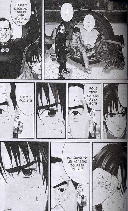Suite au massacre de Shinjuku, la chambre de Gantz est particulièrement remplie et Kurono va jouer un rôle plus important que par le passé, car il a bel et bien compris que c’est l’équipe, et non l’individualité, qui le fera triompher. Envoyés en face d’adversaires gigantesques, des dinosaures, les gantzers n’ont pas d’autre choix que de lutter tant bien que mal face à une menace pour le moins effrayante. Seuls quelques irréductibles n’ont pas suivi les conseils du lycéen et n’ont même pas voulu endosser la combinaison, ce qu’ils paieront tôt ou tard. Kurono, quant à lui, tue de nombreux ennemis. Mais plus ceux-ci meurent, plus de nouveaux adversaires de plus en plus grands apparaissent. De son côté, Izumi prend beaucoup de plaisir à jouer de ses armes contre les ennemis, ce qui lui remémore ses sensations oubliées. Mais lorsque celui-ci se voit entouré par trois dinosaures, il ne sait plus quoi faire et c’est alors que le plus surprenant se passe puisque ceux-ci s’entretuent. De son côté, Kurono s’allie petit à petit avec les nouveaux membres, qui voient en lui un leader leur permettant de survivre à ce bain de sang, ce qui est plutôt une bonne chose puisque ce sont maintenant des tyrannosaures qui font leur apparition…
